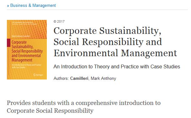 Corporate Sustainability, Social Responsibility and Environmental Management: An Introduction to Theory and Practice with Case Studies – by Mark Anthony Camilleri,PhD (Edinburgh)