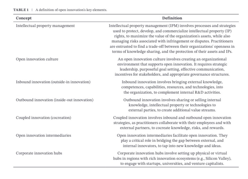 Elements of open innovation