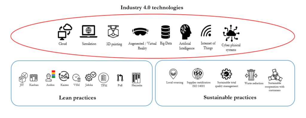 For example, at the time of writing, several automotive manufacturers claim that they are integrating lean and sustainable practices. Very often, they indicate that they utilize I4.0’s disruptive technologies. Yet, a number of academic commentators argue that some of these practitioners unsustainable manufacturing processes and waste management behaviors are contributing to the negative impacts to the degradation of the natural environment, thereby accelerating climate change (Liu & Kong, 2021; Sonar et al., 2022).